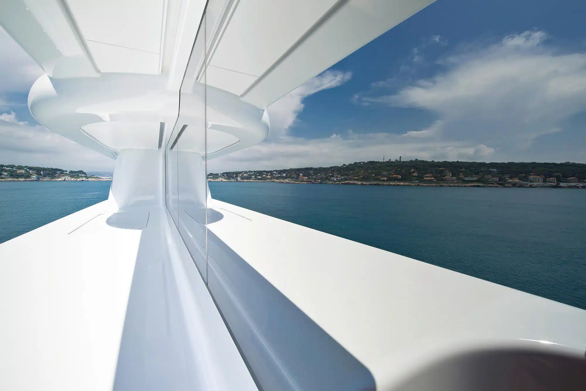 The glazing of a yacht is one of the most important design features, it must fulfil the highest demands and at the same time offer security. With our FORMGLAS SPEZIAL® glazing we offer unique and outstanding type-approved solutions for yacht glazing, from simple compound safety glass to bullet-proof glass and certified fire protection glazing, plane or bent.