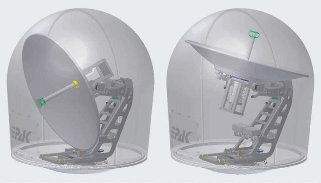 Die Satellitenantennen EPAK PRO bieten höchste Trackinggenauigkeit bei robuster und leichter Konstruktion.